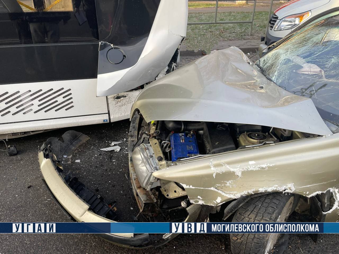 В Могилеве на улице Первомайской 54-летний водитель экскаватора-погрузчика, чтобы объехать притормозивший на остановке троллейбус, выехал на крайнюю левую полосу и столкнулся с Volvo.