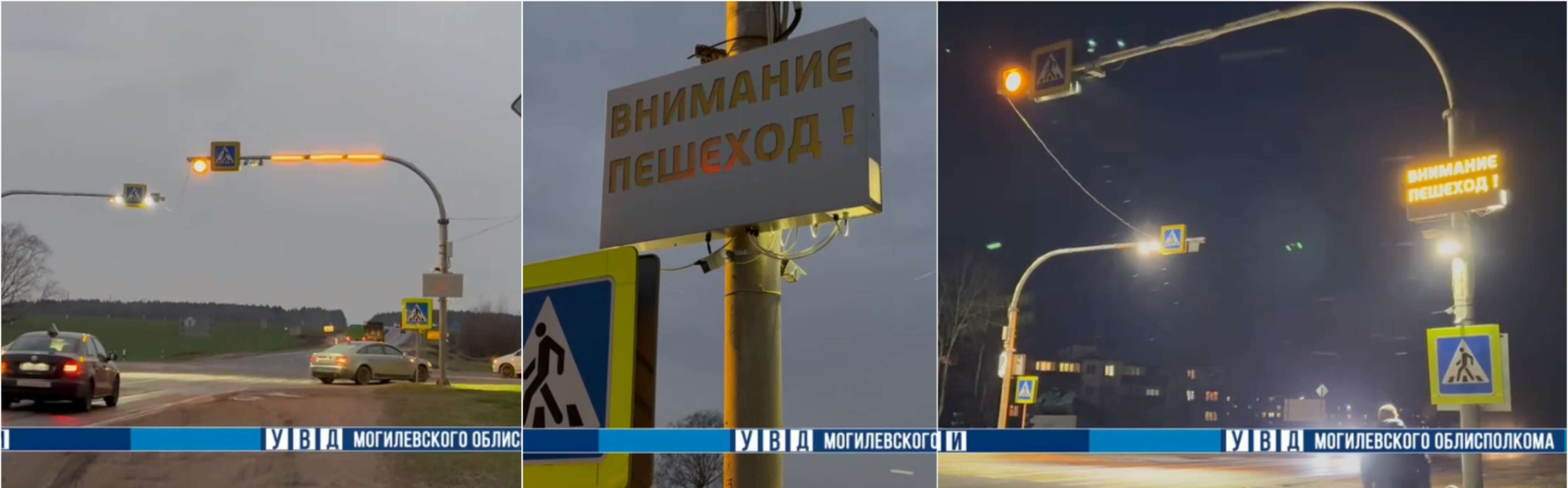 В темное время, когда пешеход подходит к переходу, включается информационное табло «Внимание-пешеход!» и начинают мигать маяки оранжевого цвета, которые гаснут после того, как пешеход пересечет проезжую часть. Дополнительные световые эффекты привлекают внимание водителей, что должно отразиться на безопасности дорожного движения.