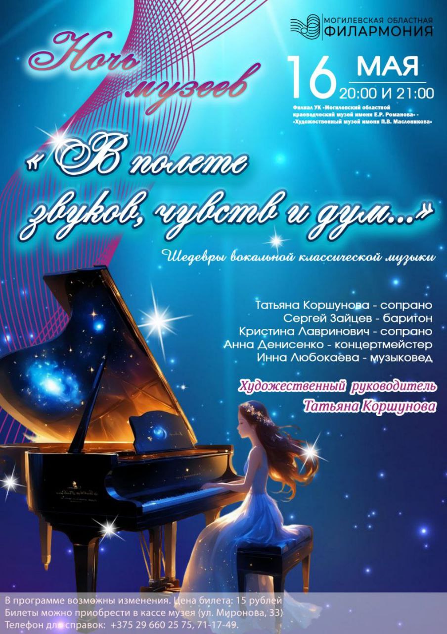 Шедевры классической музыки позволят слушателям погрузиться в атмосферу красоты и совершенства, получить искренние эмоции от соприкосновения с высоким искусством. Приглашаем посетить концерт всех, для кого классическая музыка является неотъемлемой частью жизни.
