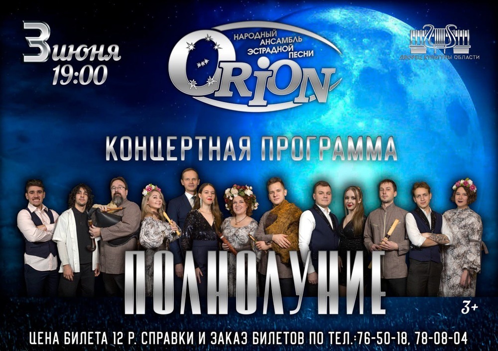 Дворец культуры области приглашает на концертную программу «Полнолуние» народного ансамбля эстрадной песни «Орион».