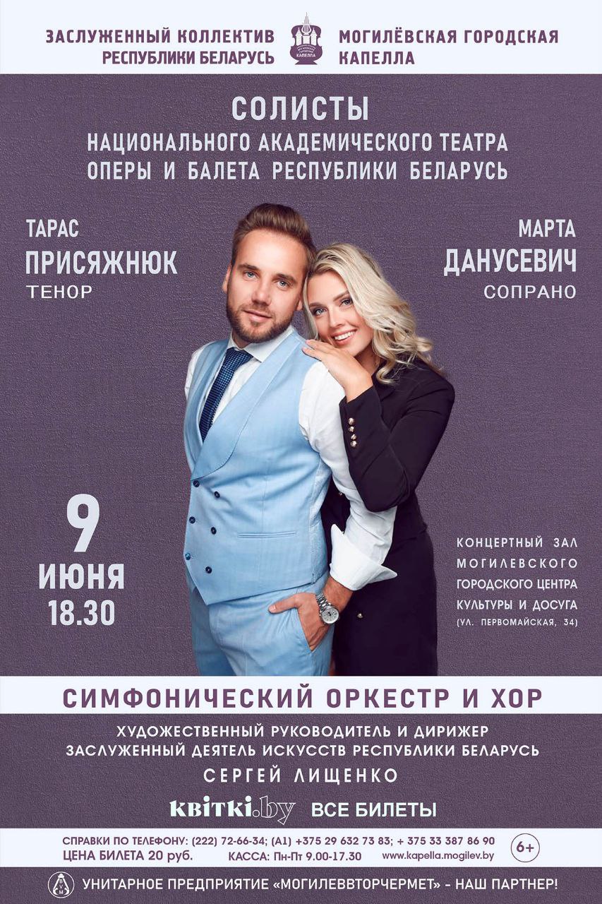 В Могилеве выступят солисты Национального академического театра оперы и балета Республики Беларусь Марта Данусевич (сопрано) и Тарас Присяжнюк (тенор) вместе с хором и симфоническим оркестром Могилевской городской капеллы.