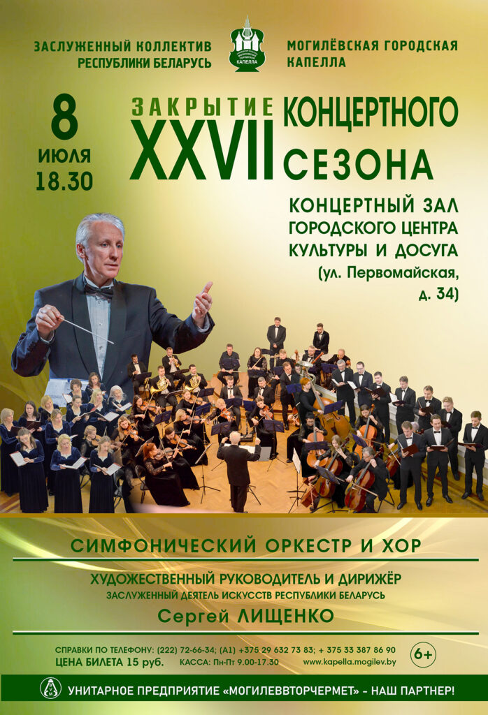 8 июля нас ждет настоящий праздник музыки, который станет заключительным аккордом ХХVII концертного сезона Заслуженного коллектива Республики Беларусь Могилевская городская капелла.