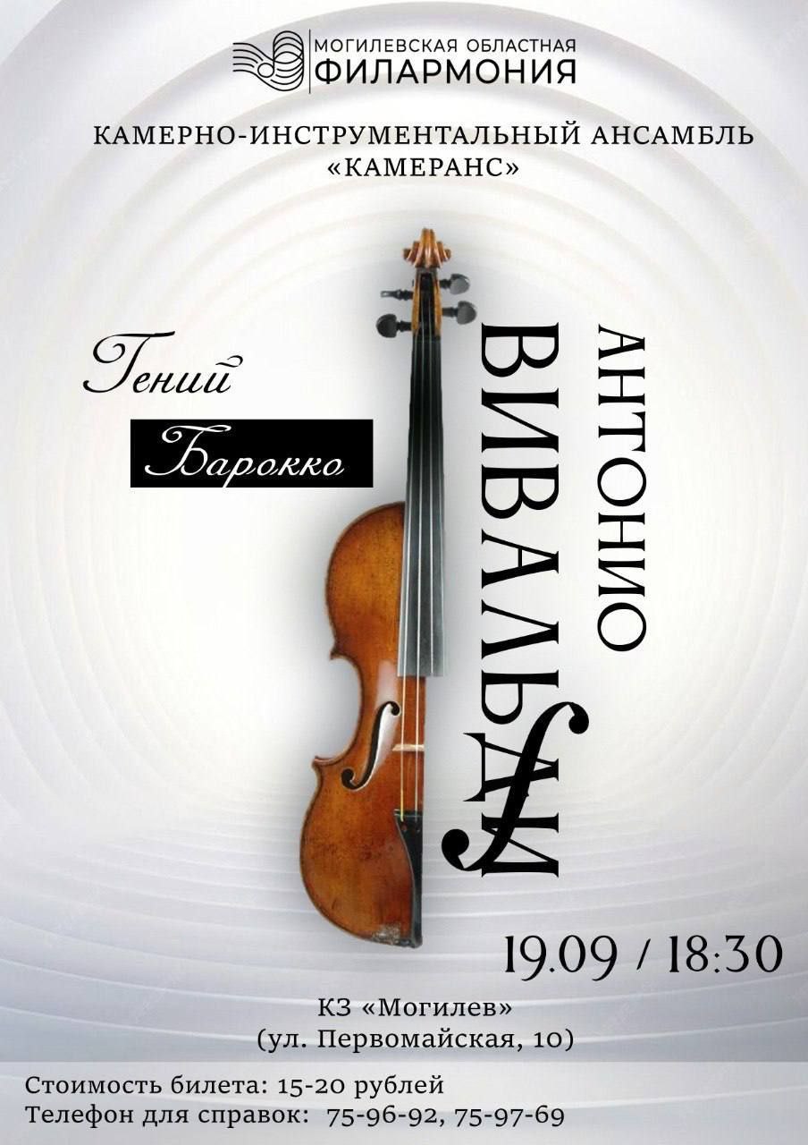 19 сентября в 18.30 в концертном зале «Могилев» пройдет концерт «Гений Барокко. Антонио Вивальди» камерно-инструментального ансамбля «КамерАнс».