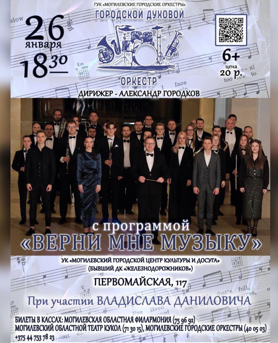 Программу представит городской духовой оркестр под руководством дирижера Александра Городкова.