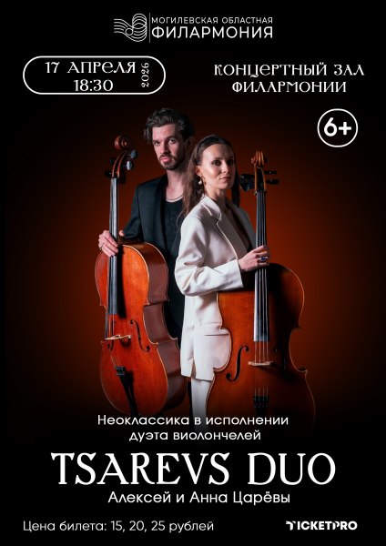 Концерт дуэта виолончелей Tsarevs duo с новой программой! Мы создали для вас что-то очень необычное — новое звучание Неоклассики в исполнении дуэта виолончелей.