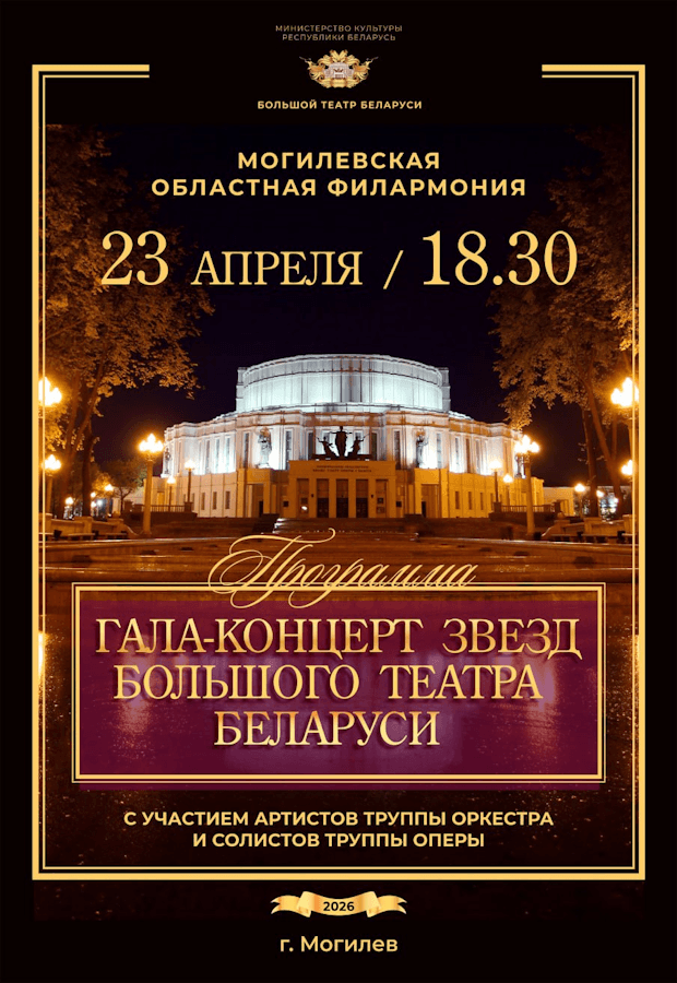 У музыки есть удивительное свойство объединять людей, стирая любые расстояния − 23 апреля в 18:30 в Могилевской областной филармонии состоится Гала-концерт звезд Большого театра Беларуси.