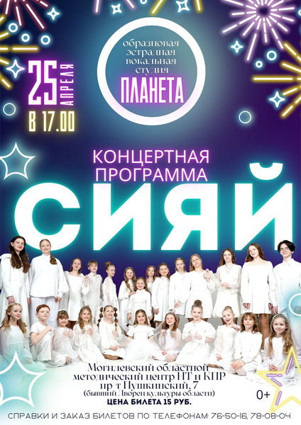 25 апреля 2026 года образцовая эстрадная вокальная студия «Планета» приглашает всех на свой юбилейный концерт «Сияй».