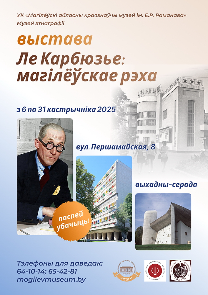 В Музее этнографии (г. Могилев, ул. Первомайская, 8) работает выставка «Ле Корбюзье: могилевское эхо», которая посвящена великому архитектору Шарлю-Эдуару Жаннере-Гри (1887-1965), более известному по своему творческому псевдониму Ле Корбюзье.