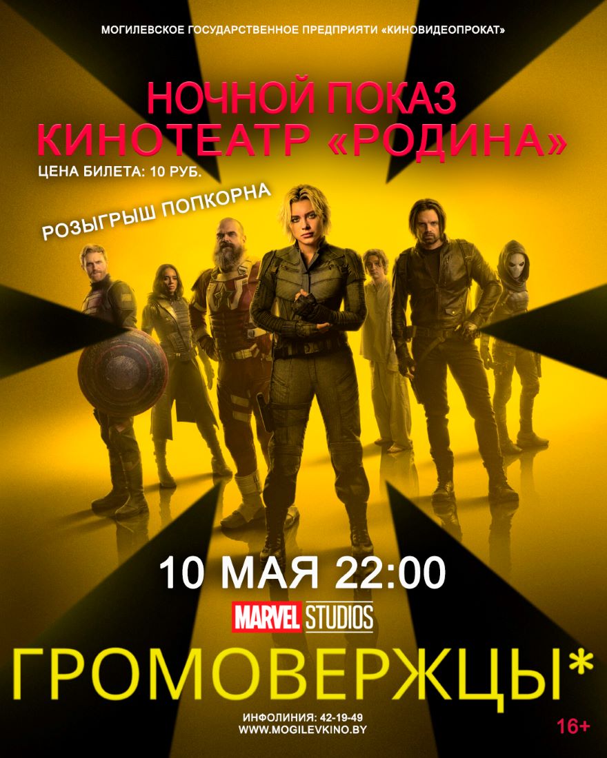 Кинотеатр «Родина» приглашает зрителей на НОЧНОЙ ПОКАЗ фантастического боевика «Громовержцы*», в котором душевная команда героев-неудачников противостоит великому злу.