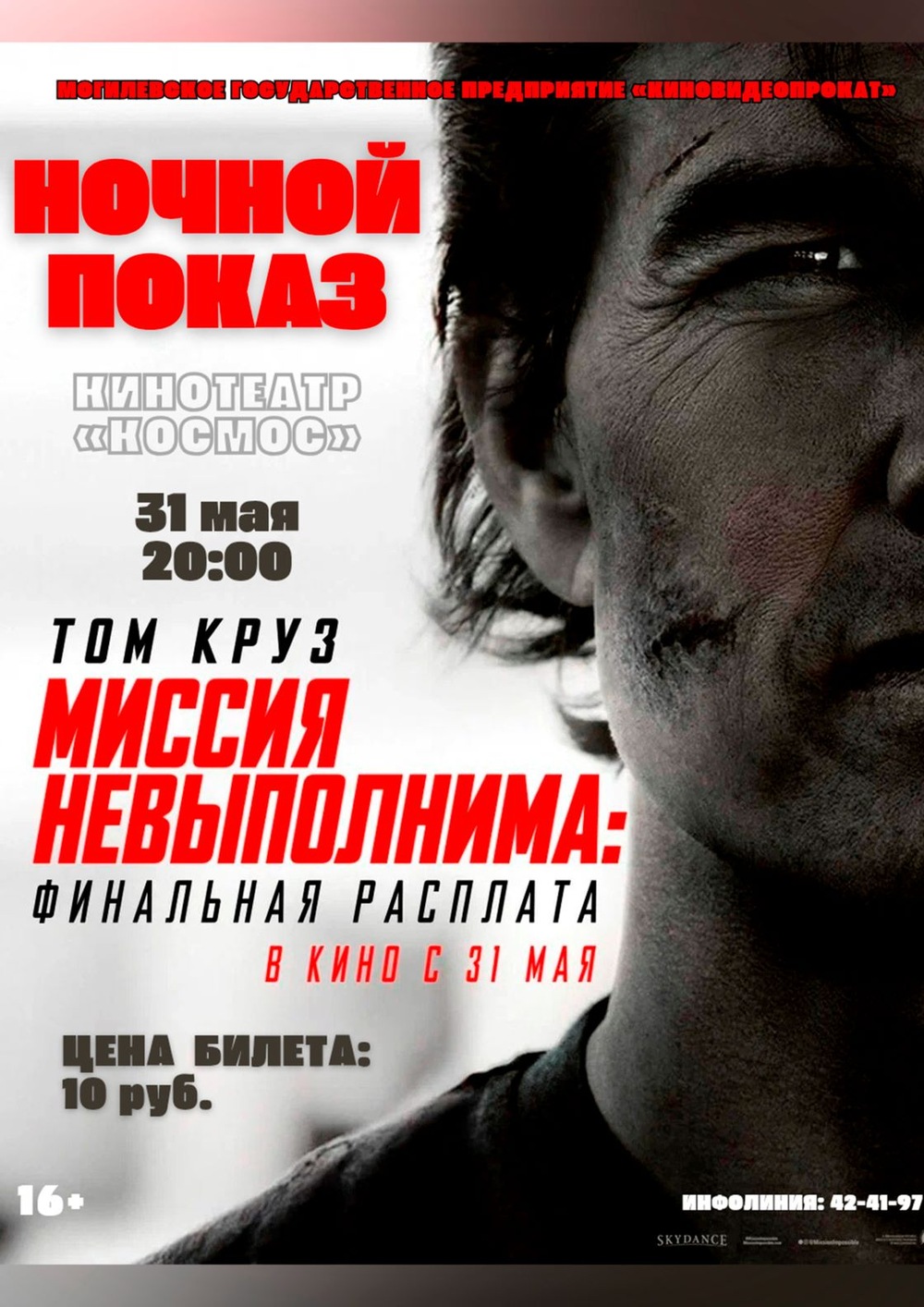 ночной показ очередной части одной из самых качественных и кассовых экшен-франшиз с захватывающим сюжетом и впечатляющими визуальными эффектами – «Миссия невыполнима: Финальная расплата» с неподражаемым Томом Крузом в главной роли.