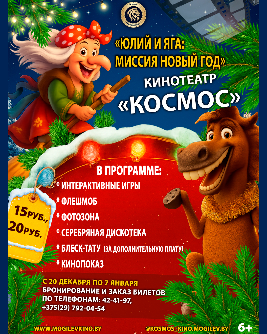 | пятница, 26 декабря | Космос | 15,00 − 20,00 р. | 10:00−18:00 | |