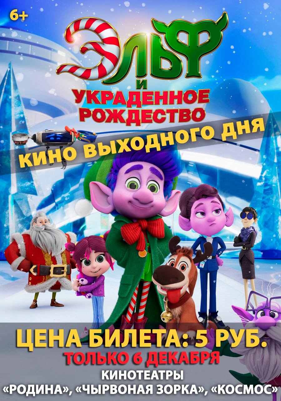 6 декабря в кинотеатрах «Родина», «Чырвоная Зорка», «Космос» мультфильм «Эльф и украденное Рождество» всего за 5 рублей!
