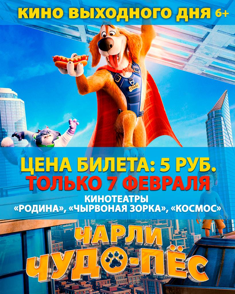 7 февраля мультфильм «Чарли чудо-пес» всего за 5 рублей в кинотеатрах «Родина», «Чырвоная Зорка», «Космос»!