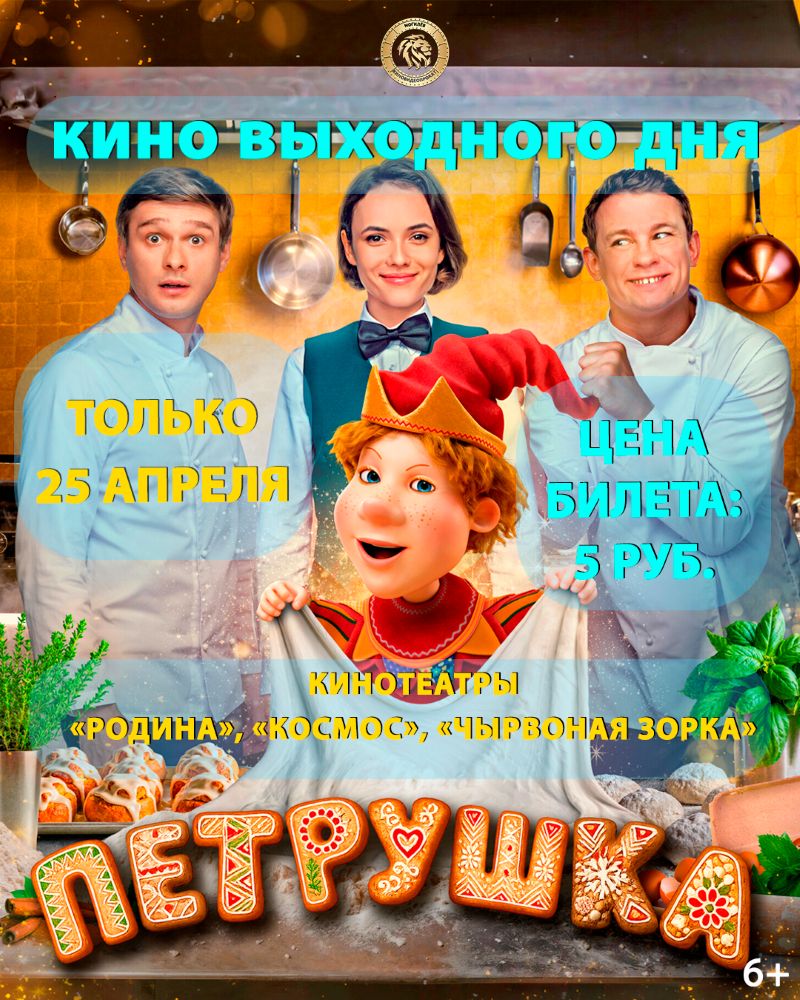 25 апреля семейный фильм «Петрушка» всего за 5 рублей в кинотеатрах «Родина», «Чырвоная Зорка» и «Космос»!