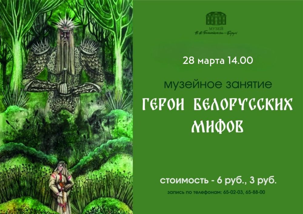 28 марта в 14:00 в филиале Национального художественного музея Республики Беларусь "Музей В.К. Бялыницкого-Бирули" состоится музейное занятие "Герои белорусских мифов"!