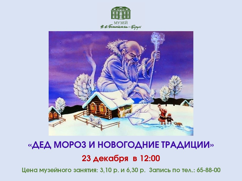 | вторник, 23 декабря | Музей В.К. Бялыницкого-Бирули | 3,10 − 6,30 р. | 12:00−13:00 |
