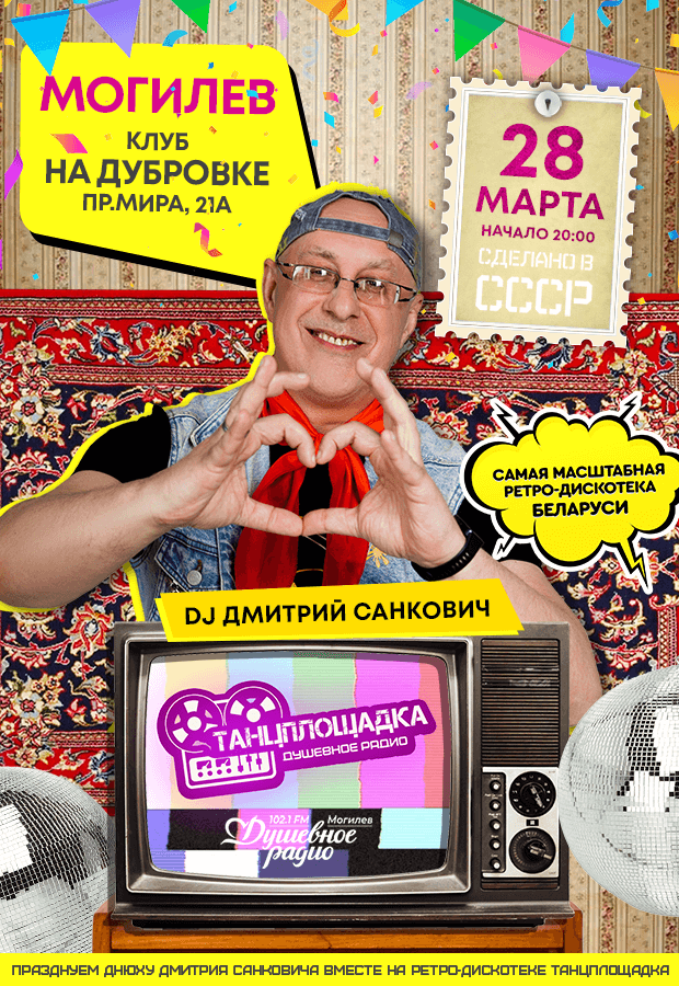 За пультом — диджей и радиоведущий "Душевного радио" Дмитрий Санкович, который отметит в этот вечер свой День рождения вместе с Вами!