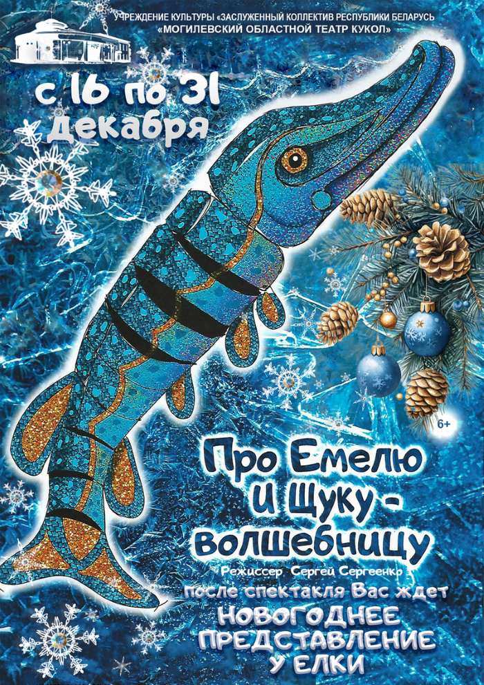 С 16 по 31 декабря Могилевский областной театр кукол приглашает юных зрителей и их родителей на спектакль «Про Емелю и Щуку-волшебницу» в постановке Сергея Сергеенко.