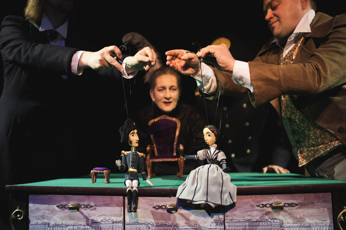 В «Пиковой даме» Гродненского областного театра кукол переплетаются мотивы повести и оперы, но режиссер Олег Жюгжда находчиво и с юмором (благо пушкинский первоисточник дает для этого все основания) выходит из потенциально спорной ситуации, не посягая на либретто. Александр Сергеевич и Петр Ильич сами становятся героями спектакля, который развивается как своеобразная творческая дуэль между писателем и композитором. Извечное противопоставление знаменитых произведений превращается в параллельный драматический конфликт постановки.