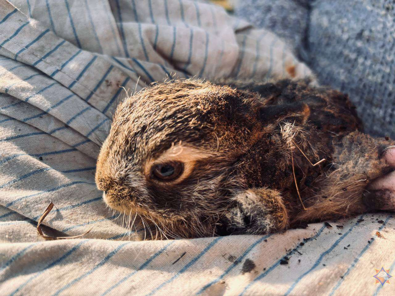 Дожидаясь приезда спасателей, женщина услышала жалобный писк. Среди горящей травы о помощи просил маленький беззащитный зайчонок. Женщина выхватила малыша из огня. К сожалению, пламя уже успело повредить шкурку зайчонку. Теперь до своего полного выздоравления он будет жить в доме своей спасительницы.