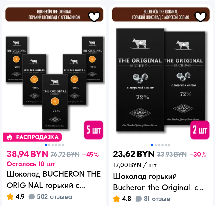На Ozon шоколад «Бушерон» продается, в т.ч. и с морской солью. Стоит шоколад роскошно — по 12 белорусских рублей за плитку.