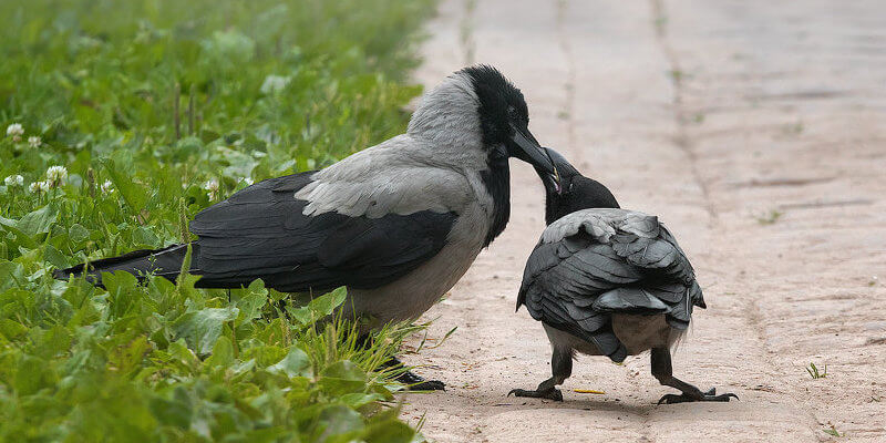 Забирать и даже трогать слетков серых ворон вообще опасно. Ворон — птица смышленая. Взрослые особи запоминают людей как врагов и могут пикировать на них. Бывает так, что серые вороны идут в атаку на всех людей подряд, если они оказываются вблизи спрятавшихся слетков. Т.е. родители оберегают своего беглеца, не боясь прямой схватки с человеком. Что там говорить про кота, например.