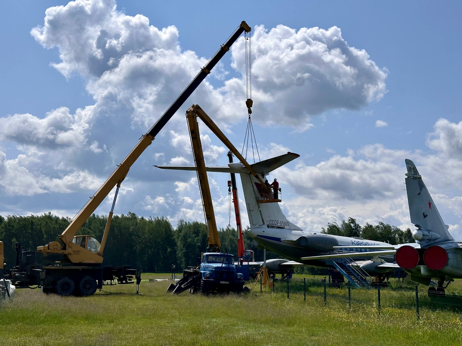 Самолеты разбирают, чтобы их перевезти на Буйничское поле. Летная техника станет частью экспозиции Музея Славы Могилевщины, открыть который планируют ко Дню независимости.
