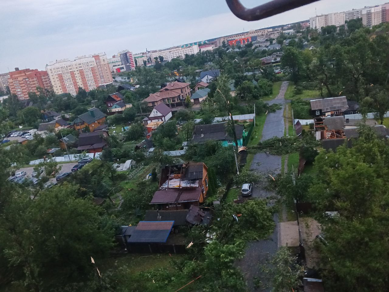 Статистику по нанесённому ущербу мы вряд ли узнаем даже утром. Ветер, а его сила наверняка достигала 25-30 м/с, сносил деревья, крыши, заборы, в городских пабликах даже пишут о рухнувших вышках сотовой связи и балконах.