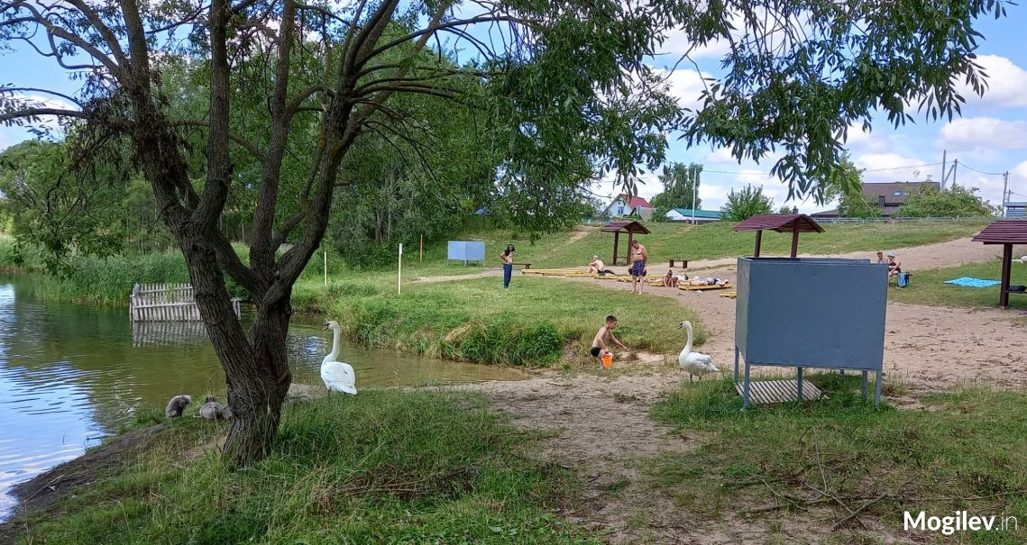 Вода в карьере чистая, людей мало. И пляж официальный — там дежурит ОСВОД, а качество воды регулярно проверяют санслужбы. Вот как выглядит лебединое озеро в Могилеве.