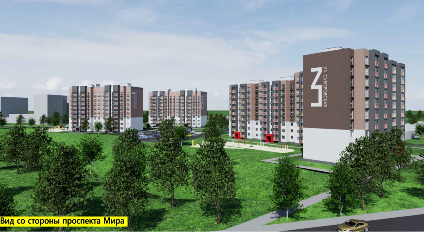 Участок под застройку расположен в границах пр-та Мира, ул. Королева и ул. Суворовской. На нем планируют снести всю некапитальную и ветхую капитальную усадебную застройку. На участке расположены детский реабилитационный центр и гостиница. Их, судя по всему, сохранят. Весь участок занимает 8,95 га, под новостройки с учетом имеющихся объектов общественной застройки пойдет 7,5 га.