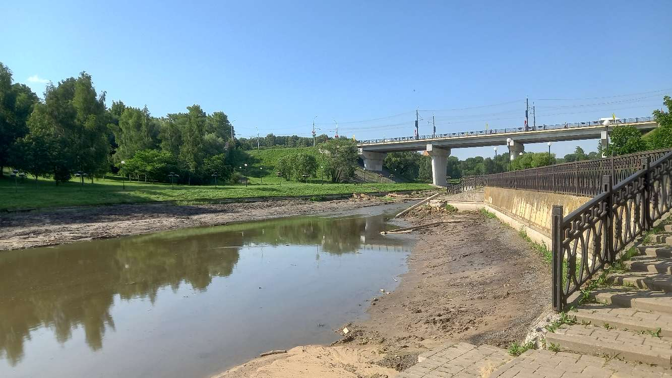 В июле Дубровенку продолжают чистить. Выглядит сейчас река в центре Могилева грустно.