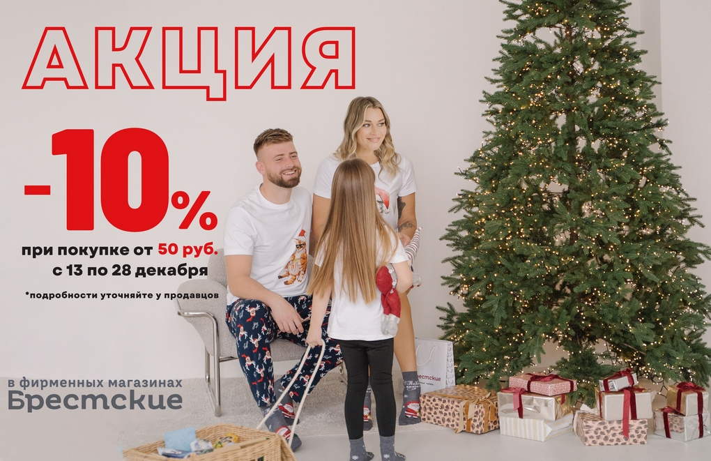 С 13 по 28 декабря покупателям предлагают скидку 10% при покупке от 50 рублей на весь ассортимент.