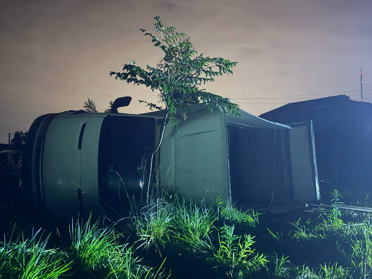 Местные жители делятся фото опрокинутой ветром грузовой ГАЗели.