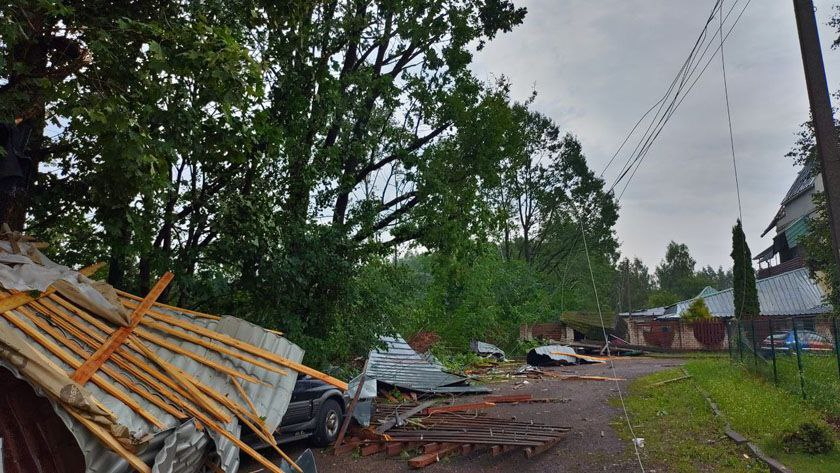 В Минском районе в агрогородке Колодищи ветер сорвал крыши с 17 жилых домов. В результате повреждения линии электропередач без электроснабжения оставалось 600 частных жилых домов.