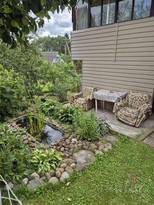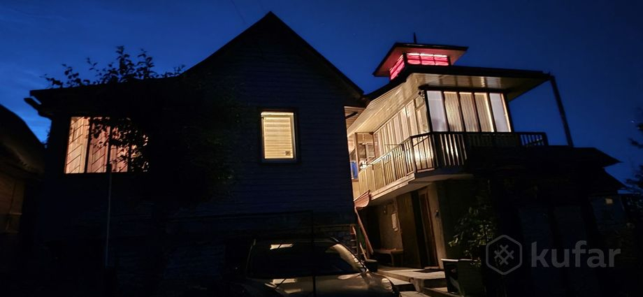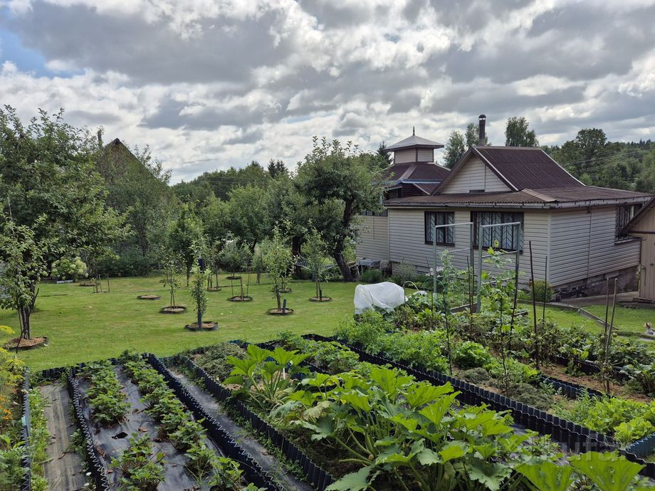 Дом 80 м², участок 8,93 сотки. Первый этаж дачи — кирпич, второй этаж — брус, 3 этаж — мансарда. В доме обустроенный туалет, горячая вода (вода, опять же, сезонная), камин, баня с собственной купелью, на участке беседка, мангал и ландшафтный дизайн.