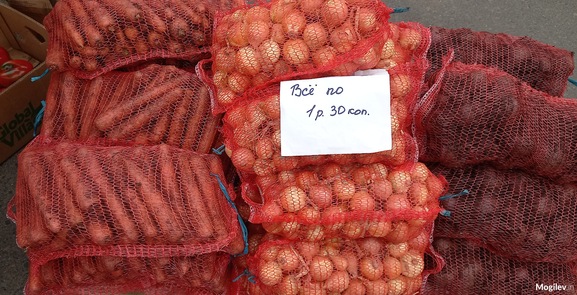 Морковь в мешках (по 5-7 кг, не больше) по 1,20-1,30 руб. Столько же лук и свекла.