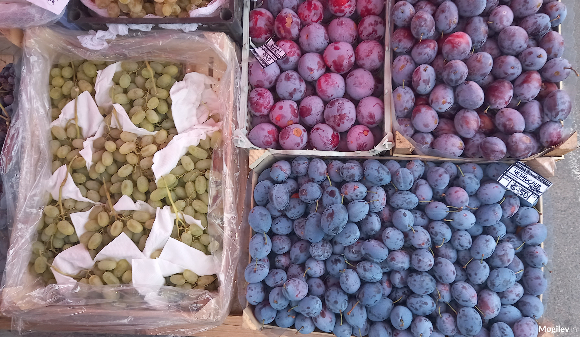 Клюква по 12 рублей, говорят, из Белыничей. Продавец еще щедро дает скидку. Груши по 5,50 руб. И только в одной палатке. Слив тоже, можно сказать, что нет — 6,50 - 7,50 руб., столько же и виноград. С фруктами вообще грустно.