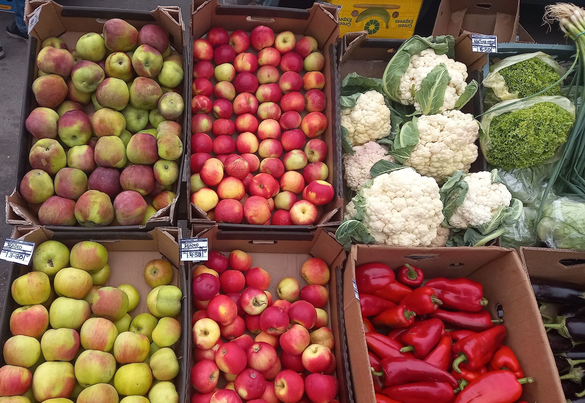 Яблоки есть. До трех рублей такие.