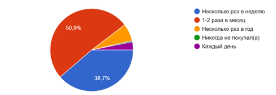 Покупатели назвали ключевые факторы при выборе платформы: цена (80%), широкий ассортимент (61,9%) и возможность оплаты при получении (60,9%). Скорость и стоимость доставки отметили 47%, и легкость возврата — 32,9%. Более половины респондентов (50,9%) ответили, что совершают покупки раз в месяц, 38,7% – несколько раз в неделю, что говорит о сформировавшейся потребительской привычке покупать товары на маркетплейсах.