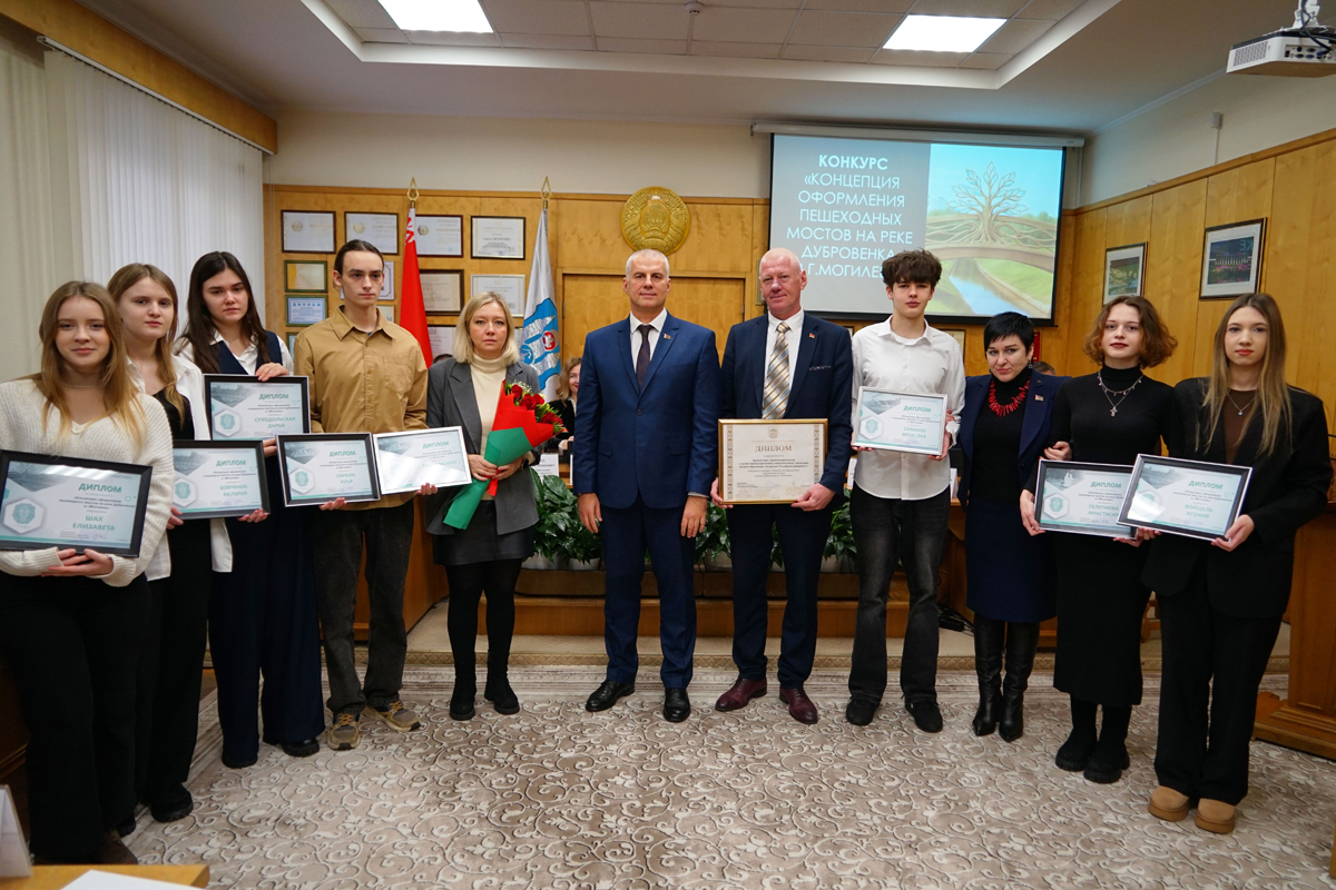 Специально созданная комиссии внимательно рассмотрела все поступившие проекты и определила победителя — архитектурно-строительный колледж БРУ, студентам которого председатель Могилевского горисполкома Сергей Чертков вручил дипломы и ценные подарки. В их числе Елизавета Шах с проектом «Эко-мосты природы и искусства», Анастасия Телепнева с проектом «Течение сказок и легенд», Валерия Бобченок, Дарья Суходольская, Ксения Войцель с разработкой вариантов мостов в районе проспекта Мира, Никита Твардовский и Илья Ларкин, предложившие комплексное благоустройство реки Дубровенка.
