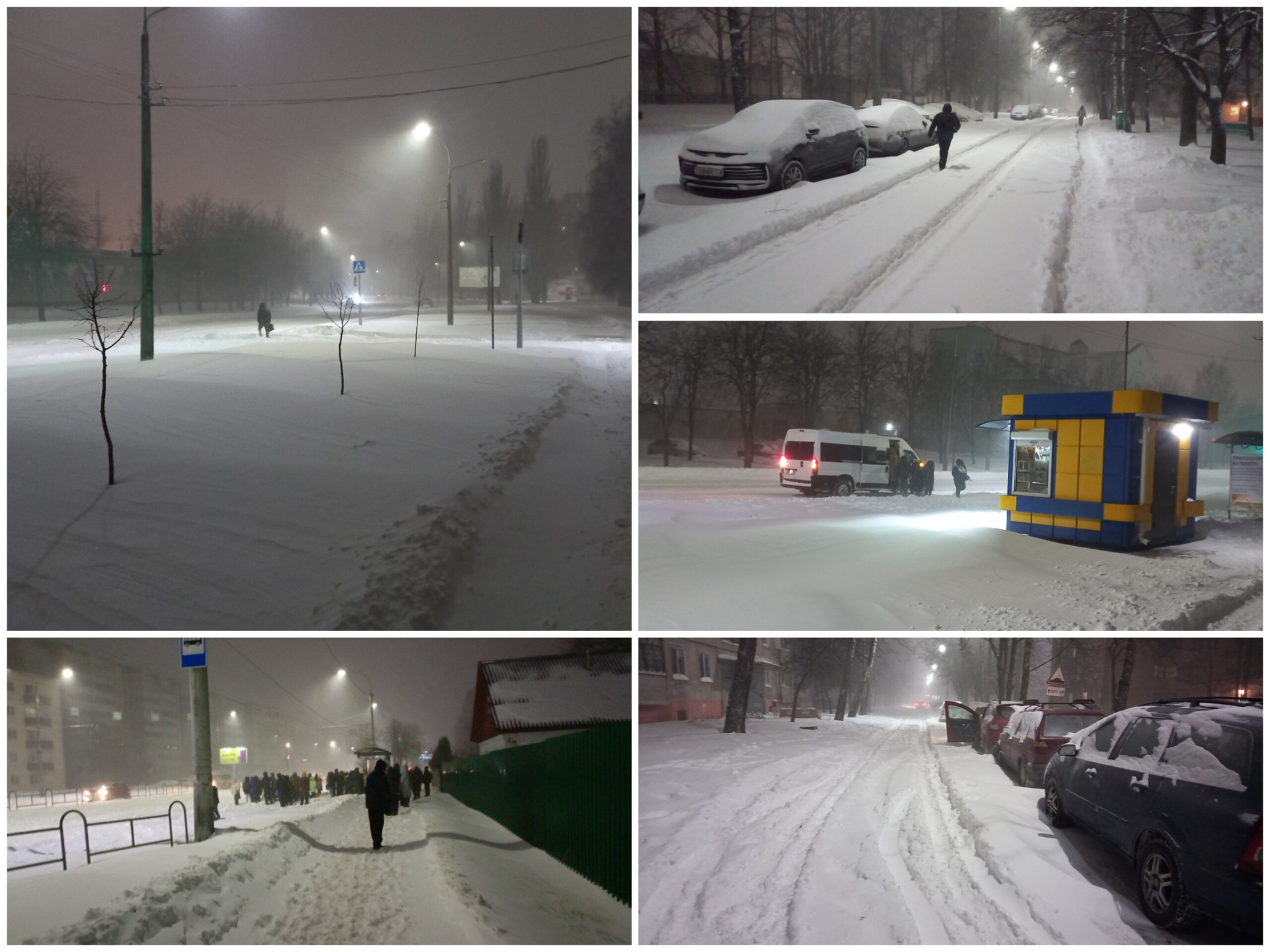 Могилев, начало восьмого утра. Шторм продолжается. На улицах транспорта почти нет. Одинокие прохожие, как Герда в поисках Кая в Лапландии, прокладывают тропинки к остановкам. Но некоторые водители героически откапывают машины и выезжают.