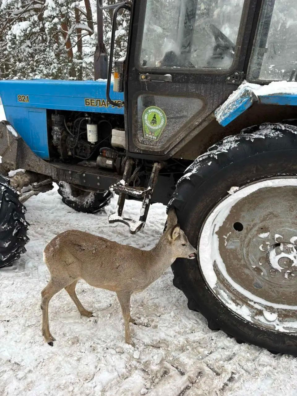 Работники Любоничского лесничества чистили дорогу в поселке Крапивка Бобруйского района, когда навстречу им выскочила косуля.