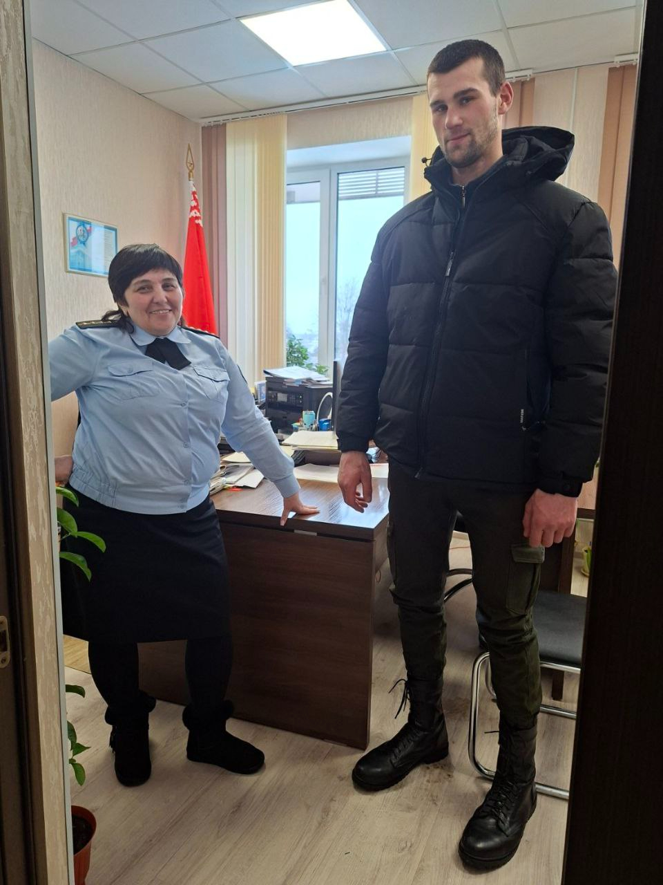 Посетитель — самый высокий мужчина в районе, его рост 2 м 17 см. Начальник отдела Валентина Кравец, которая по долгу службы выбивает долги, ростом всего 160 см. Но в этот раз все прошло мирно и дружелюбно. Правда, как рассказали в главном управлении юстиции Гомельского облисполкома, представителю закона пришлось высоко поднимать голову во время разговора.