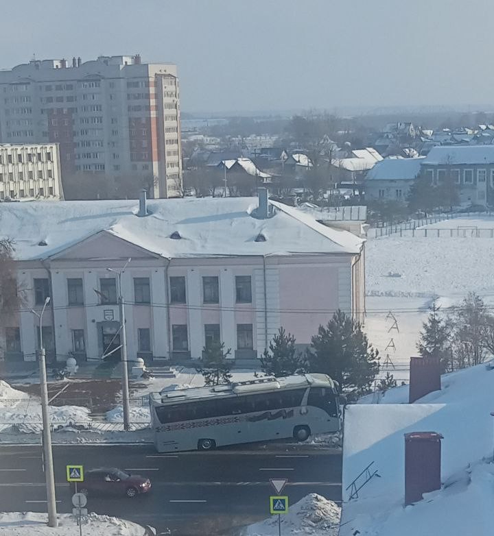 На Пушкинском проспекте Могилева автобус выехал на встречную полосу, сбил ограждение и врезался в дерево.