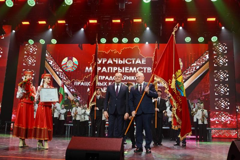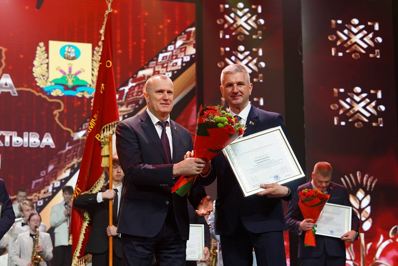 Анатолий Исаченко вручил переходящее знамя председателю Кличевского райисполкома Виктору Ребковцу