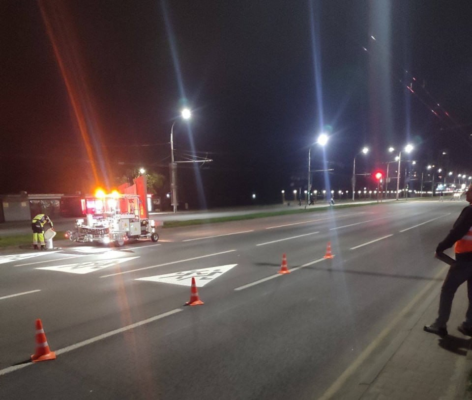 Кроме этого, в ночную же смену на главной магистрали Бреста — улице Московской — наносили дорожную разметку.