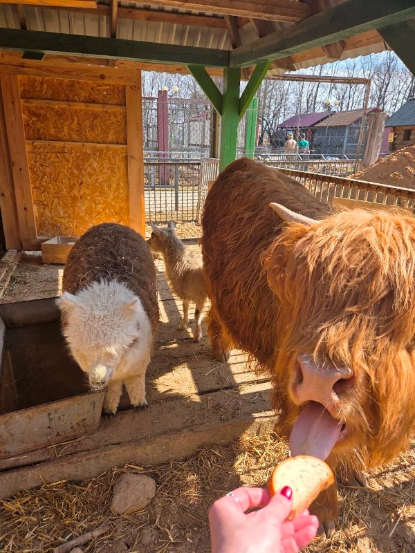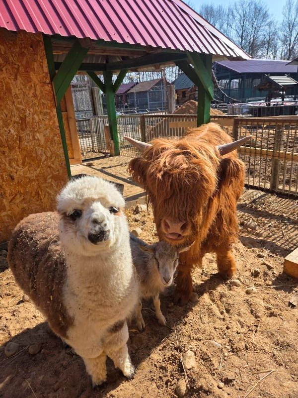 В вольере гостей встретят козочки, альпака, мини-корова хайленд, а также кролики, морские свинки и другие.
