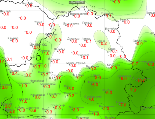 Максимальный порыв ветра зафиксирован в Волковыске — 24 м/с. Больше всего осадков вчера за день выпало в Костюковичах — 10 мм, в Бобруйске и Славгороде — по 6 мм. По западу и центру страны отмечались грозы, местами снегопады. Могилев стихия обошла стороной.