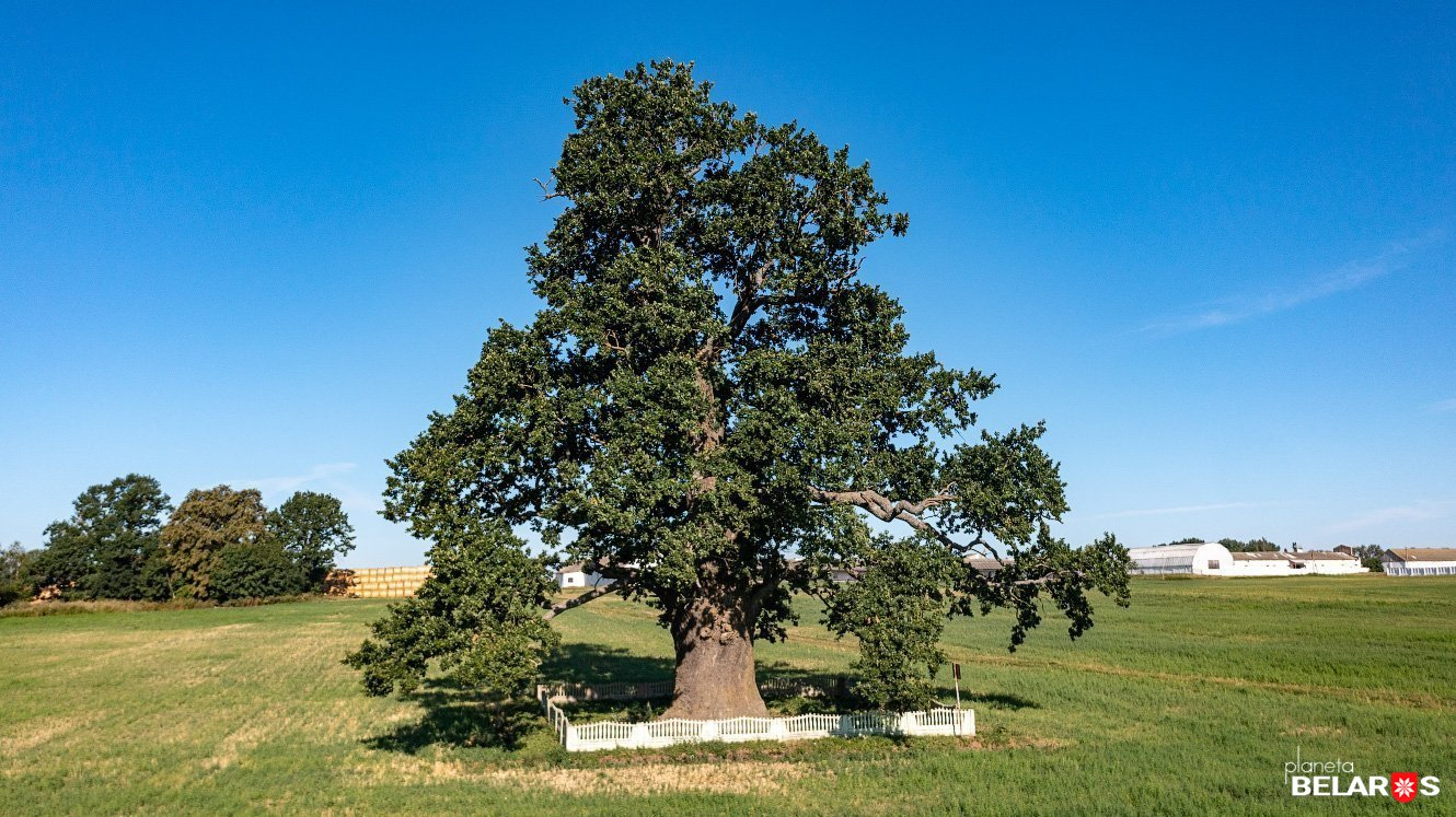 Ну и по дороге из Снова в Несвиж заверните в деревню Козлы. Там растет самый большой дуб в Беларуси. В народе его называют Дуб-Якуб. Для того, чтобы обхватить ствол великана, потребуется несколько взрослых человек. Высота дуба под 30 метров, возраст — более 230 лет. Дуб стоит в поле и виден издалека.