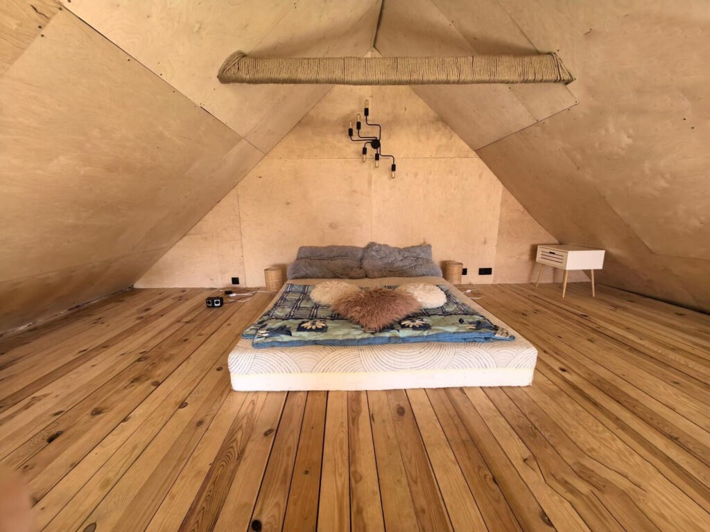 Общая площадь дома — 50 кв. м. В доме есть печь-камин, полы оборудованы системой подогрева.